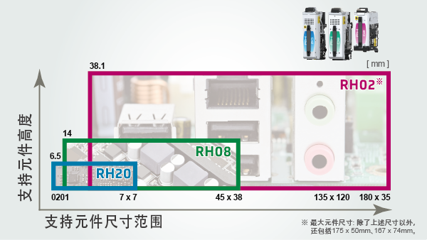 將貼裝範圍擴大到1,068×610mm。可應對各種大型電路板,例如汽車電子電路板、LED燈板、用於通信基礎設施的大型電路板。