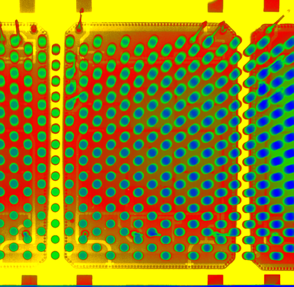 3D 斷層融合影像技術可將三維目標層析成多個水平方向的偵測切片。 可用於高密度的雙面板和多晶片封裝模組的檢測(MCM、LGA…)