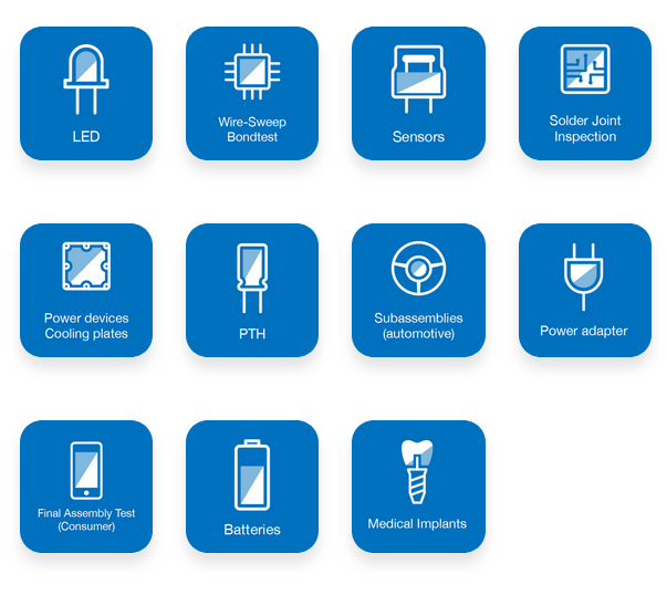 X# 平台系列是一個線上自動化X 射線系統,涵蓋了廣泛的AXI 應用。 平台高度靈活,可滿足不同領域的各種檢測需求。 檢測應用範圍從引線鍵合、大型SMT 板,高功率電子模組到成品的組裝檢查。